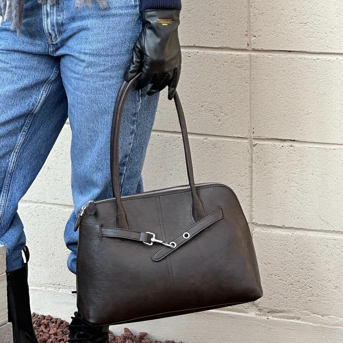 另外袋長仲加多條皮布做點綴