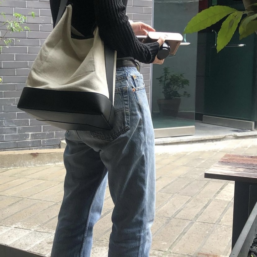 今次呢個袋用左帆布同黑色皮革黎做併色