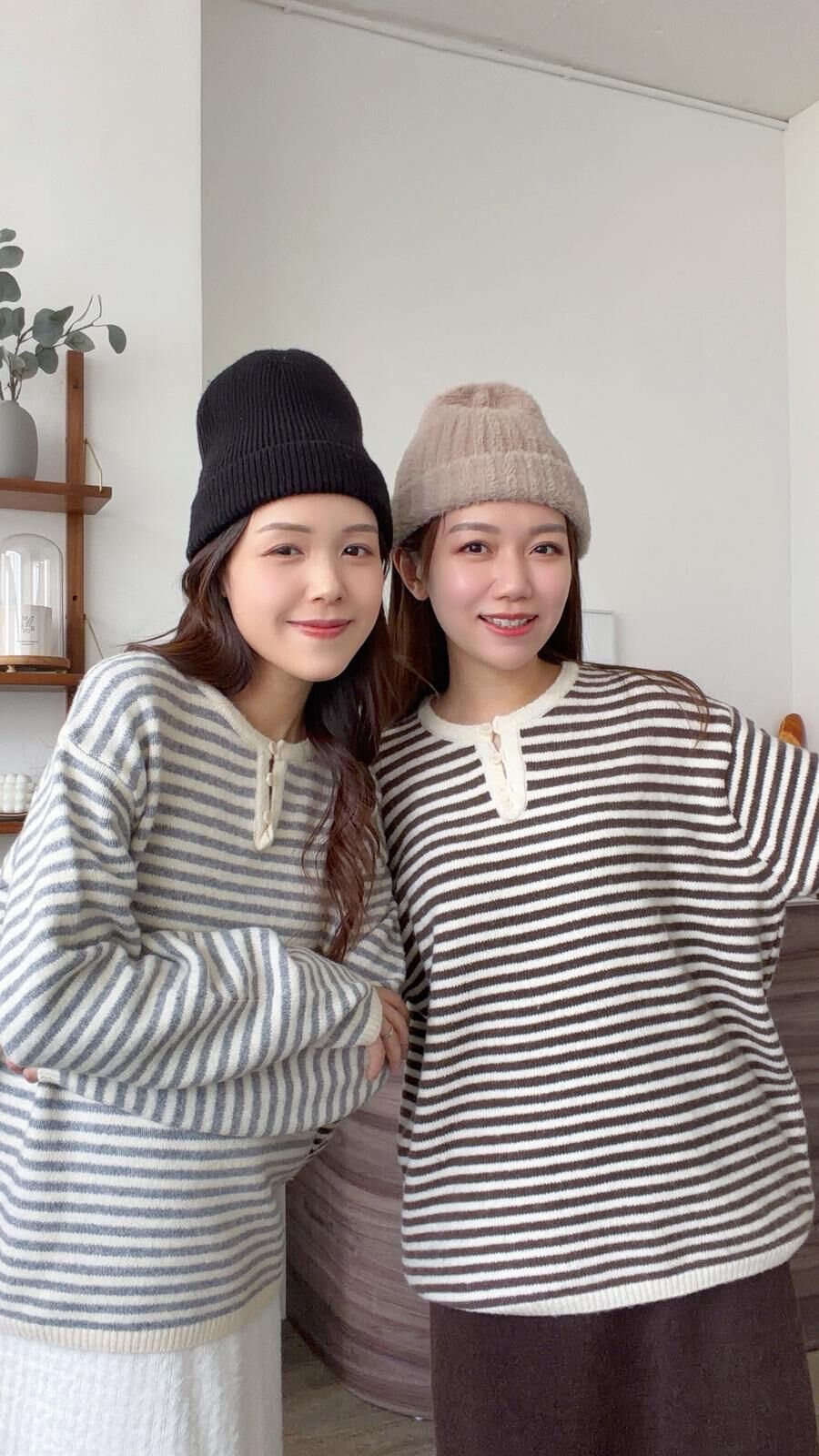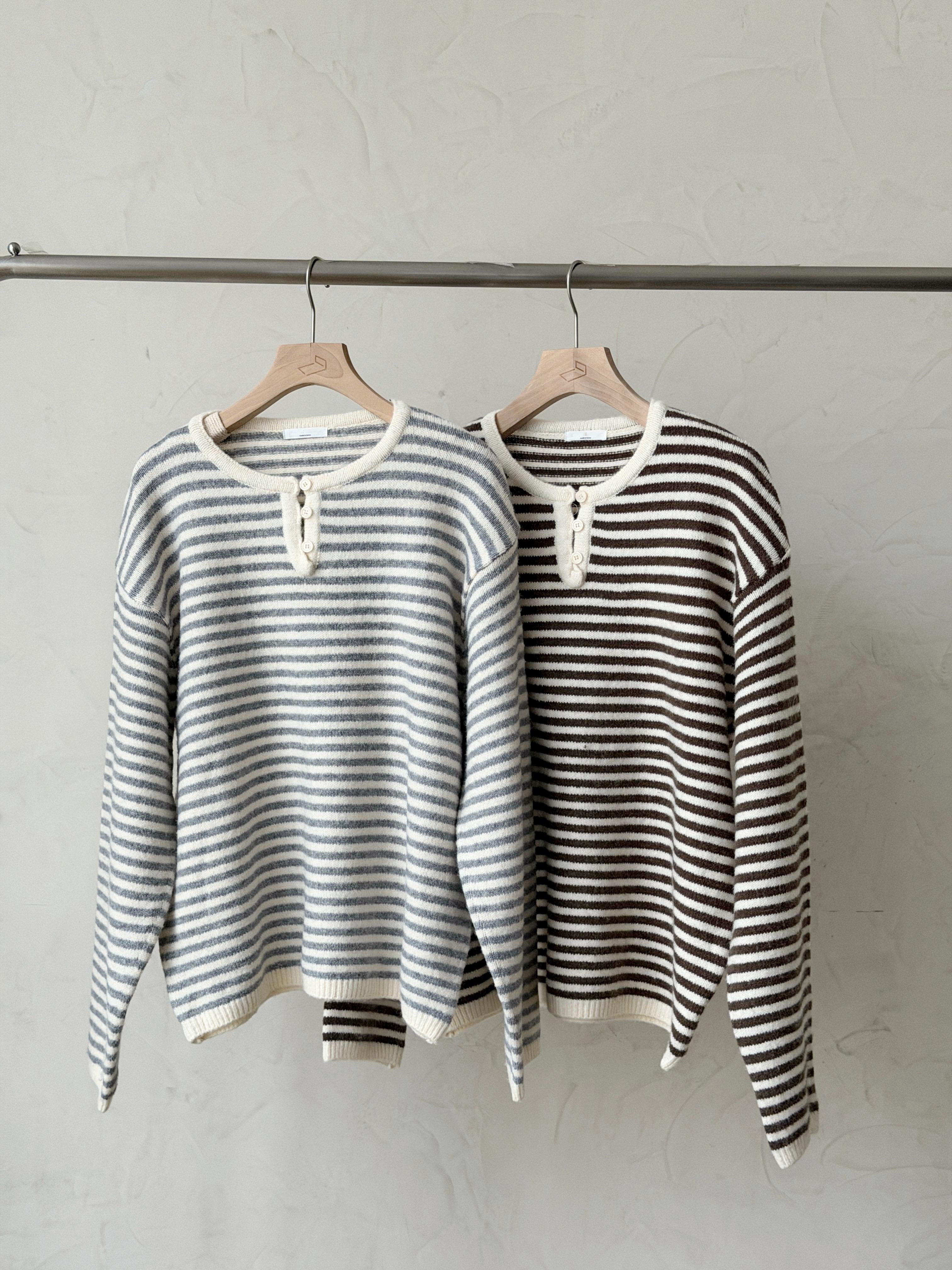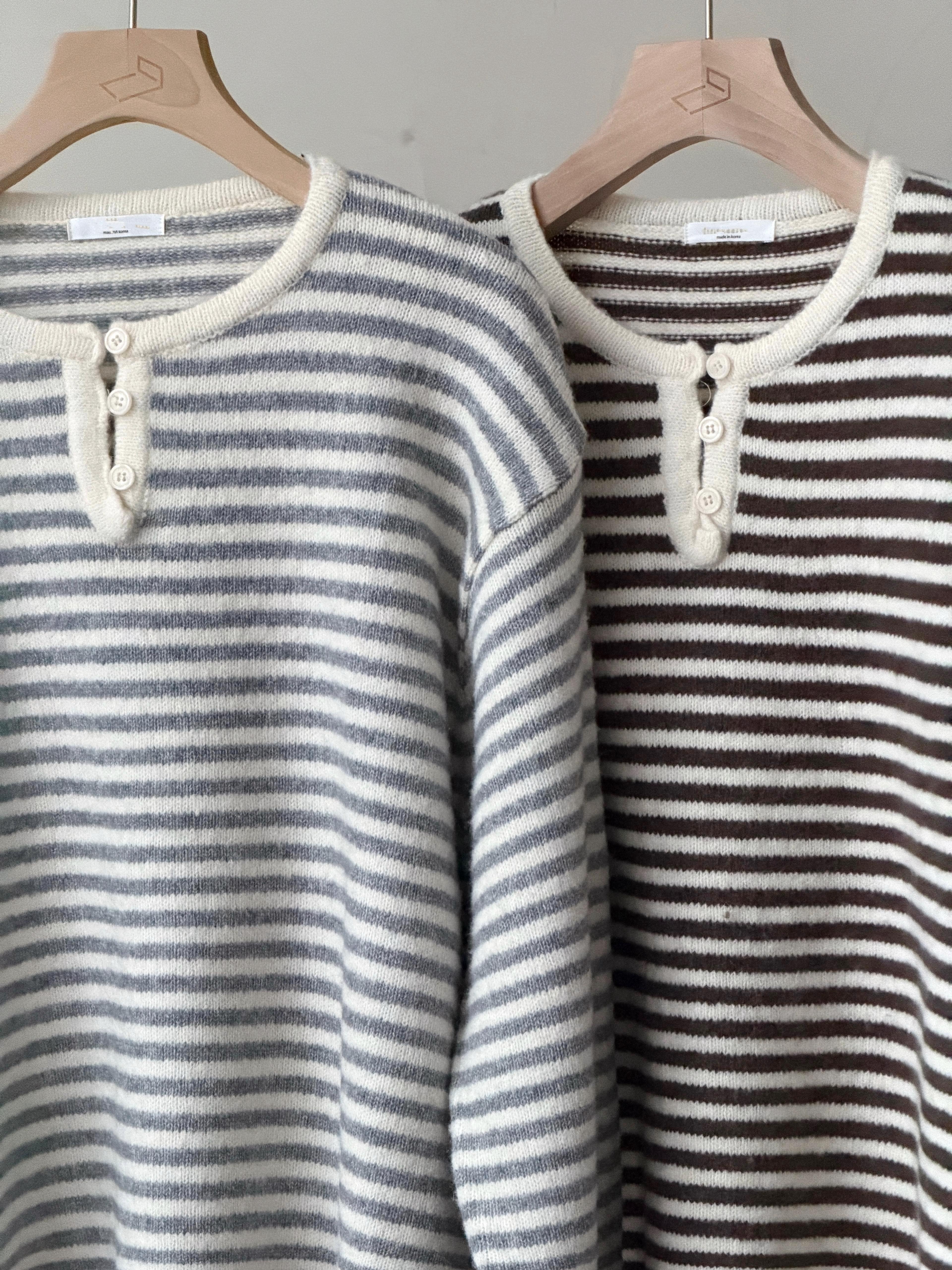 KR450 浣熊拼色橫間鈕扣冷衫-2色
