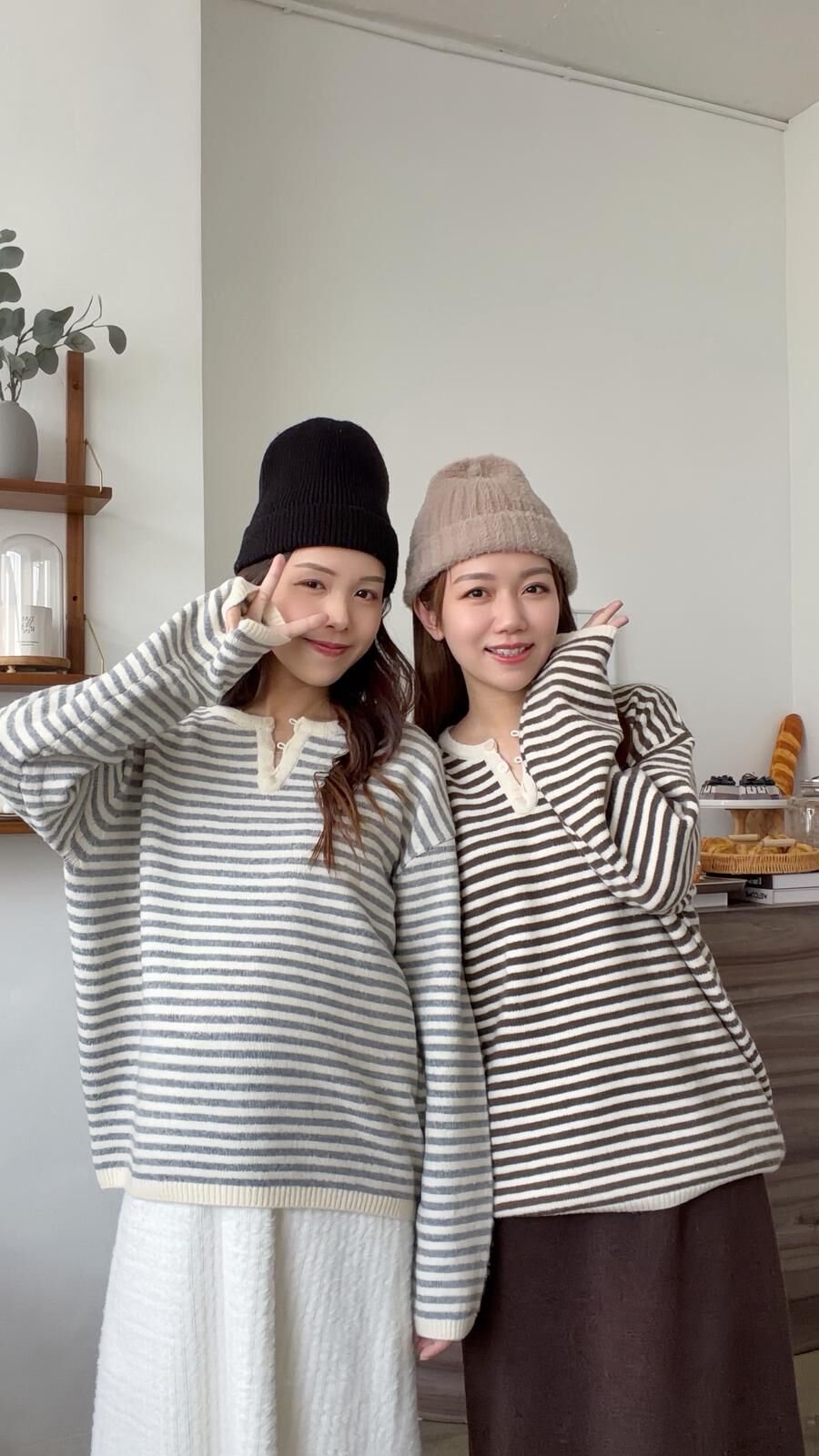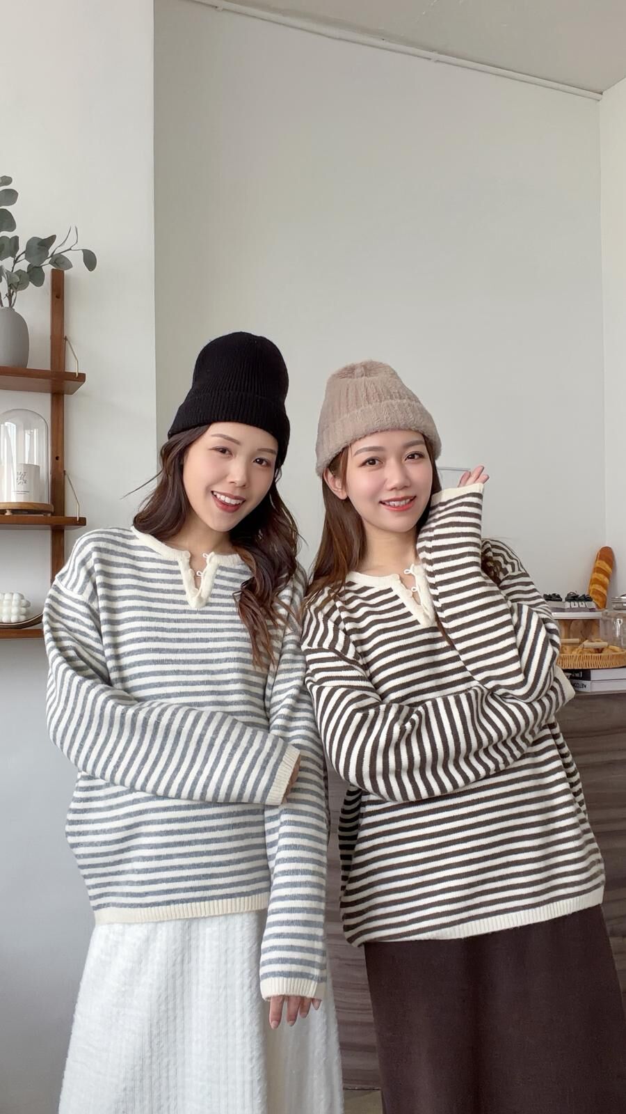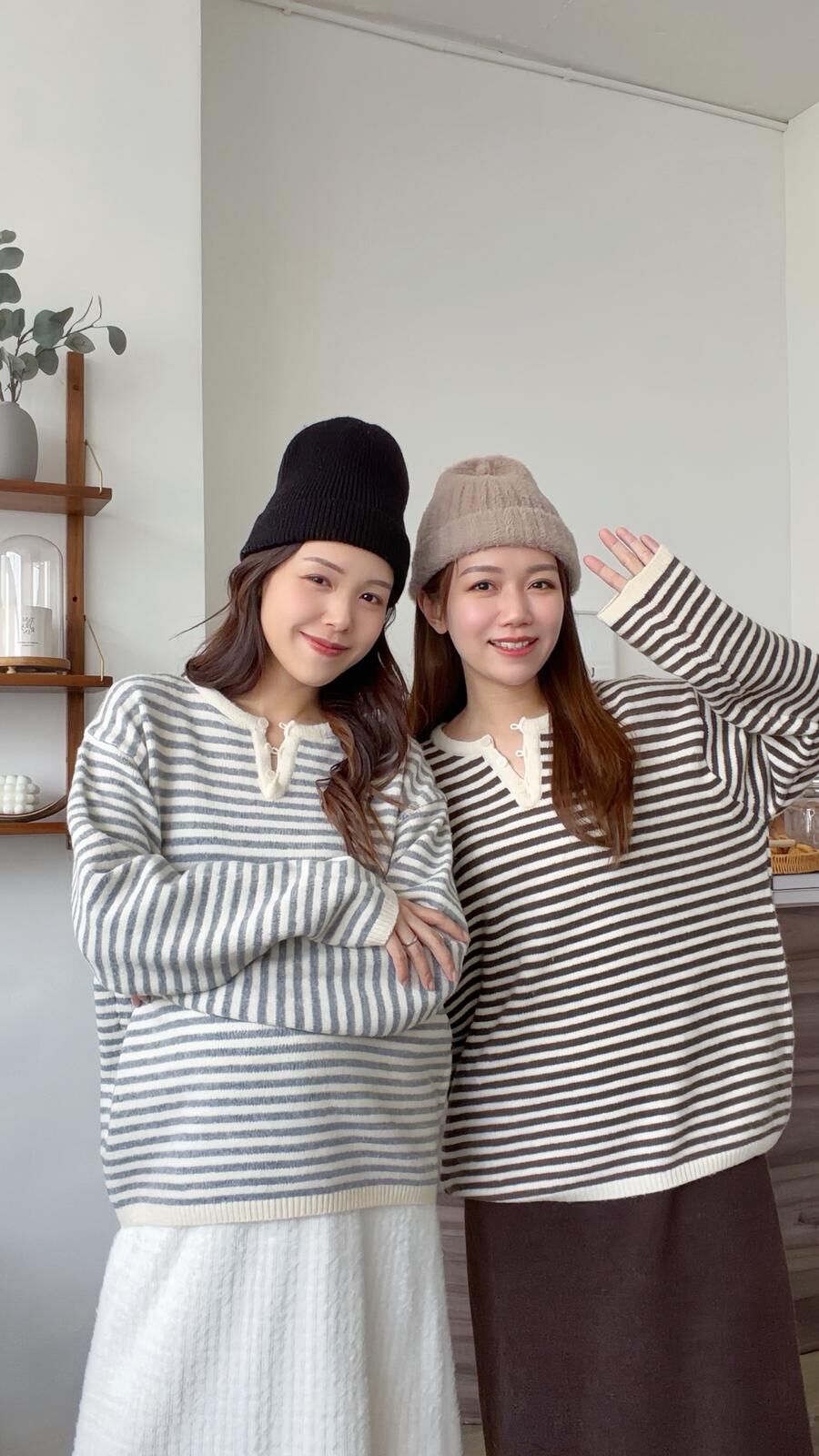 KR450 浣熊拼色橫間鈕扣冷衫-2色