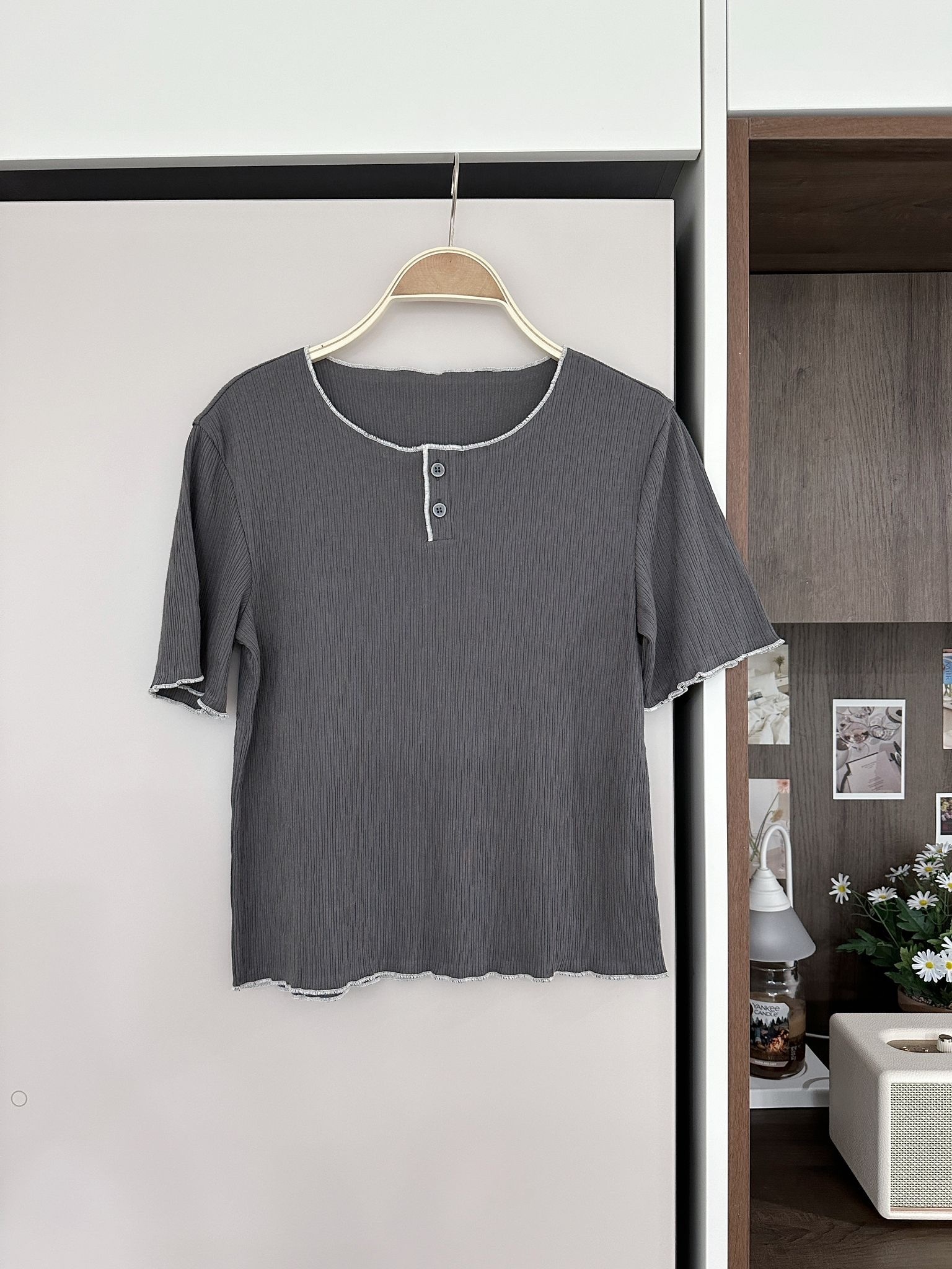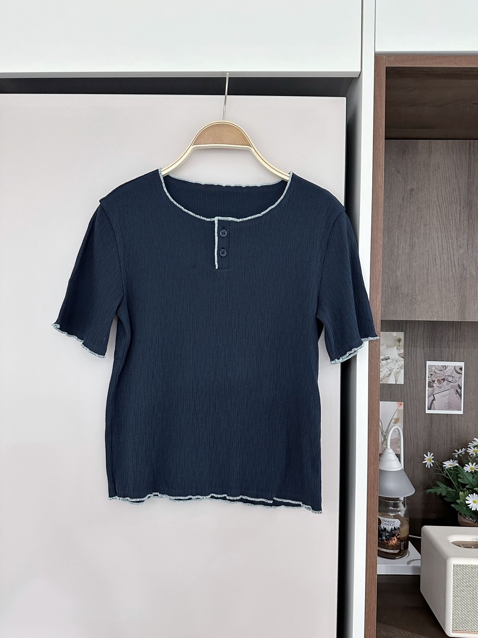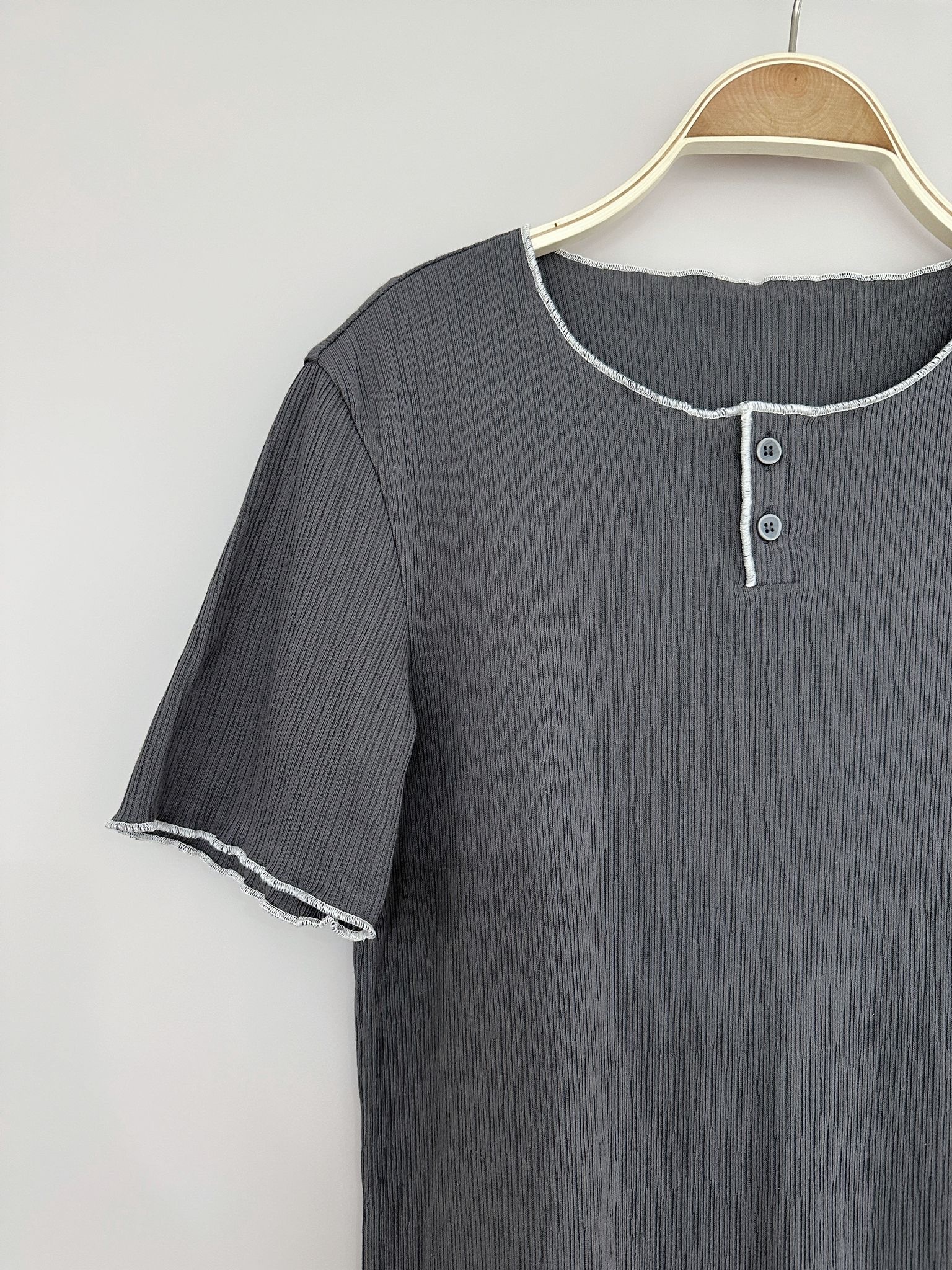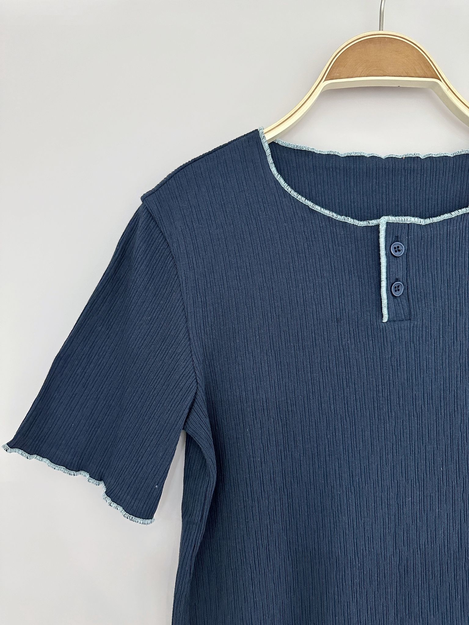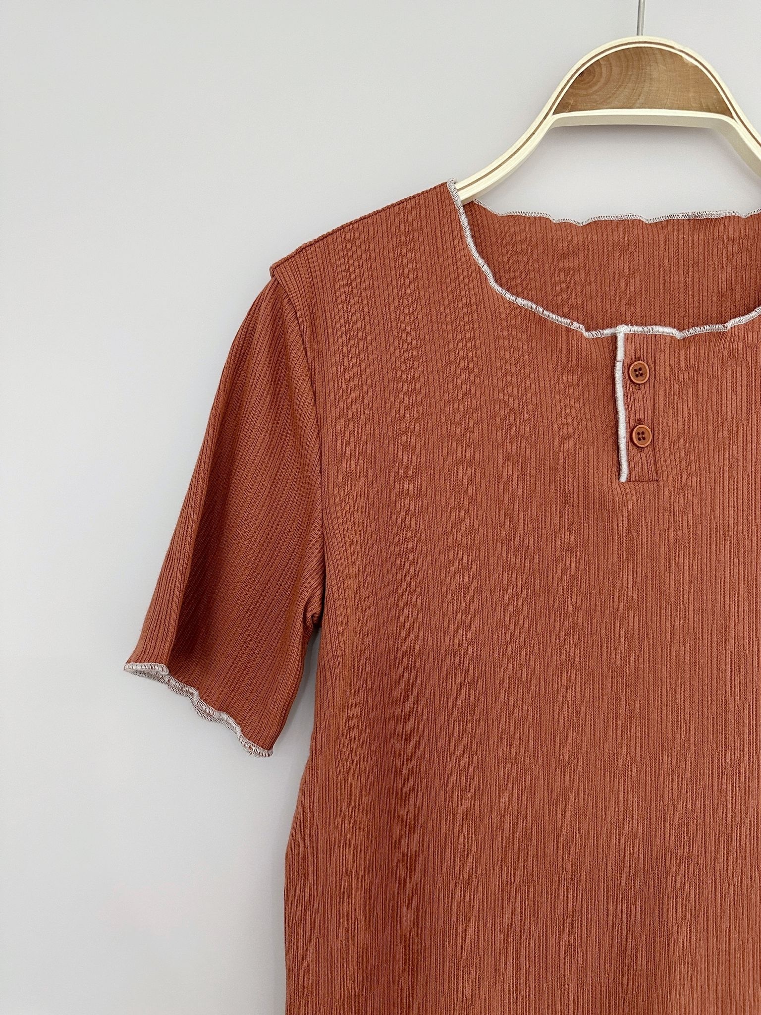 LSIBMADE20 自家製樹紋併色波浪邊TEE-5色