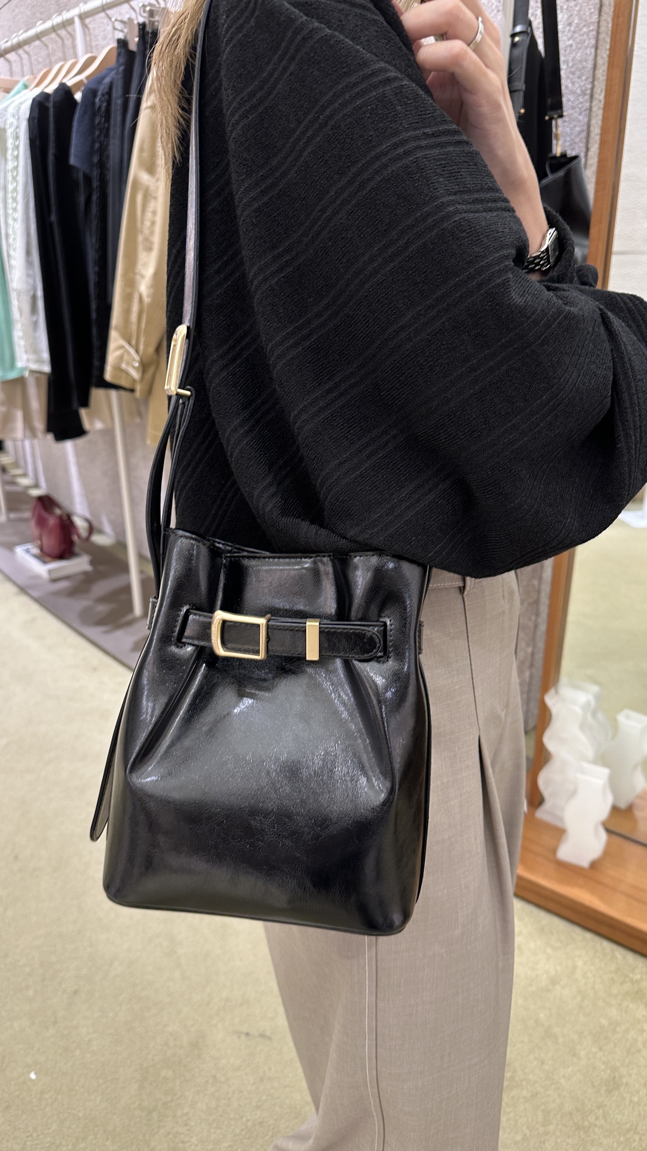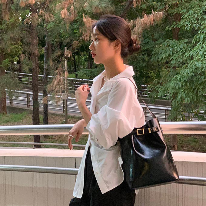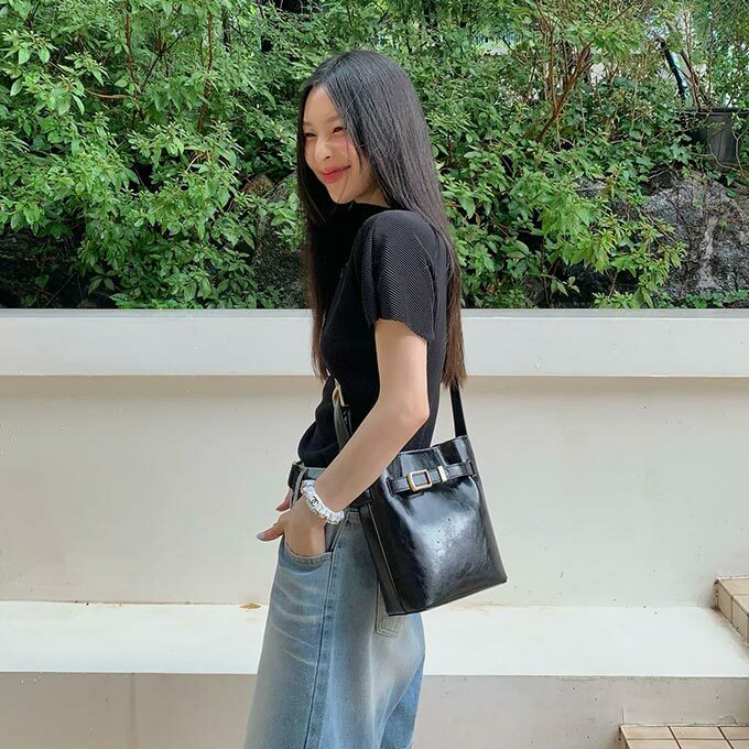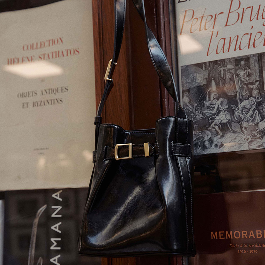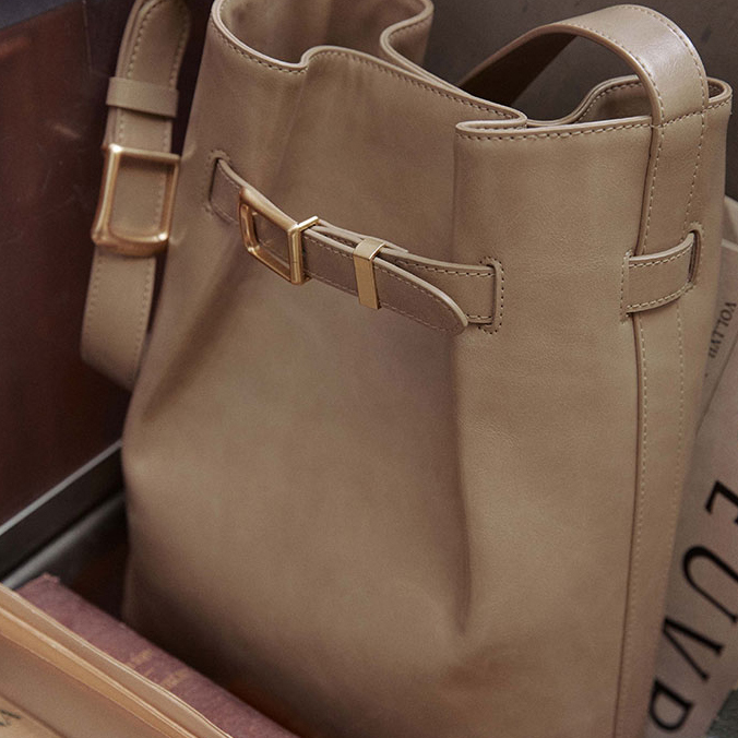 用上牛皮製作 加上金屬扣 十分有法式復古美