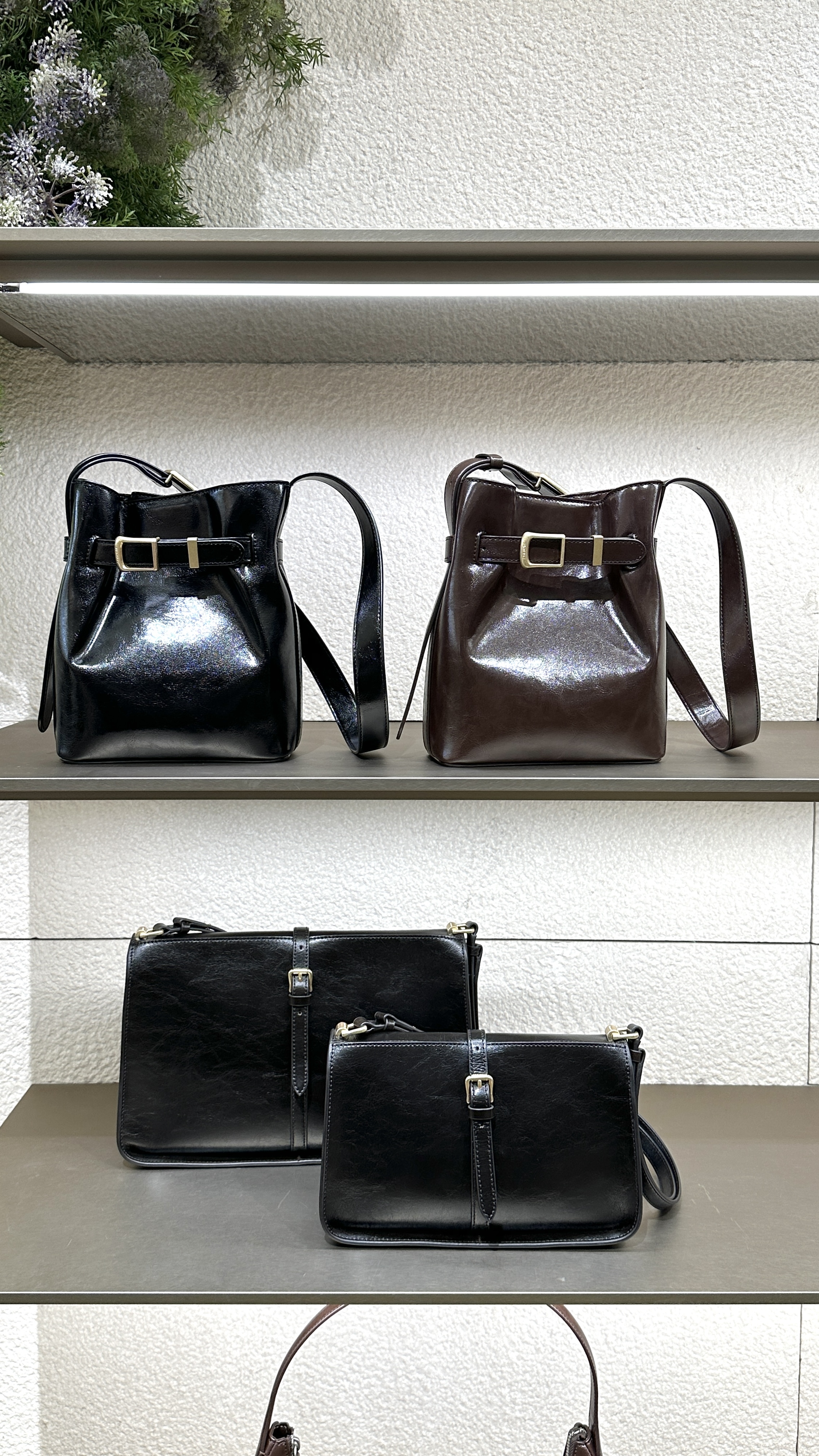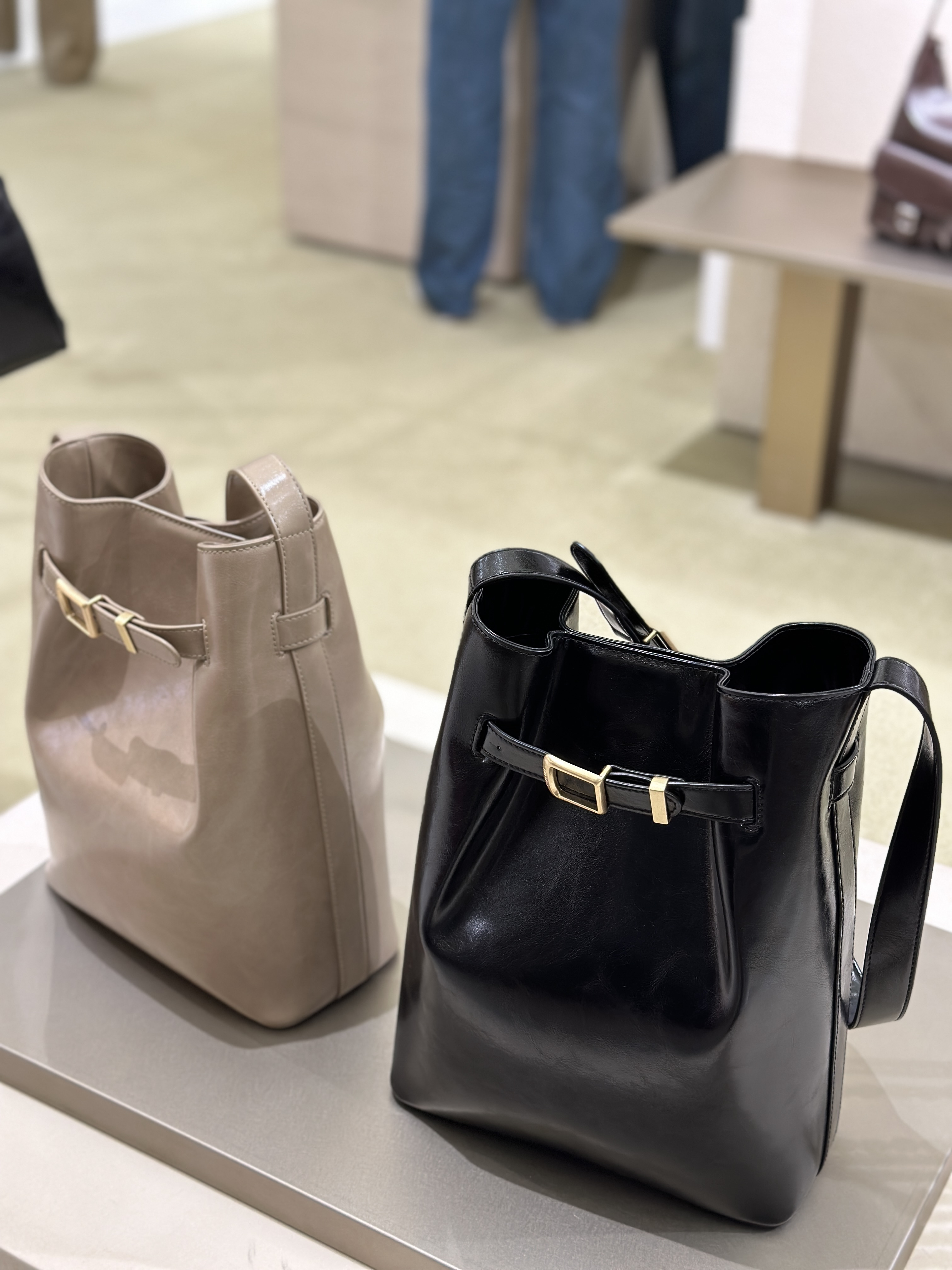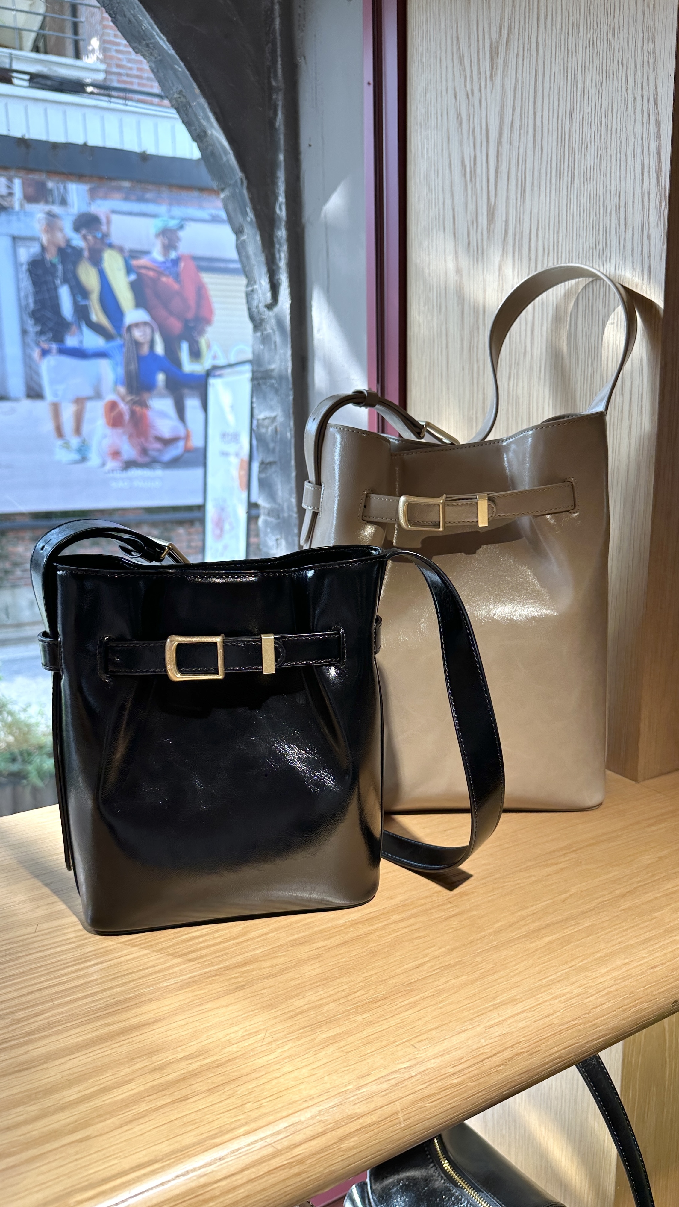 用上牛皮製作 加上金屬扣 十分有法式復古美