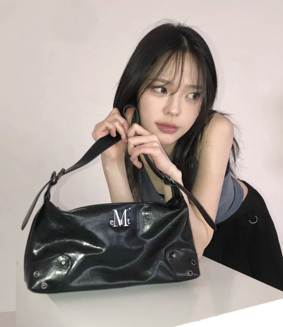 <韓國代購> MUCENT NOS EYELET LEATHER SHOULDER BAG