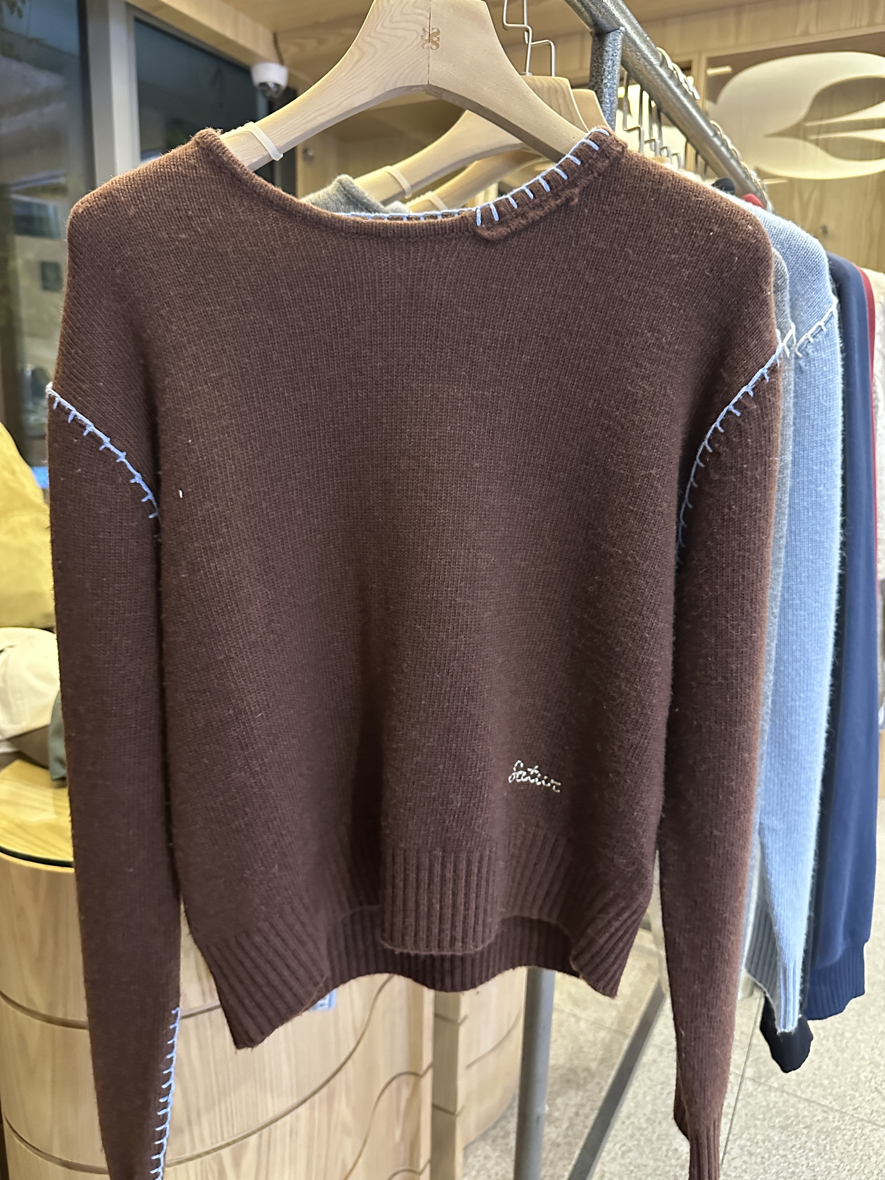 🔍 官 網 搜 尋 編 號 : SATUR CONTRAST STITCH SEMI CROP KNIT