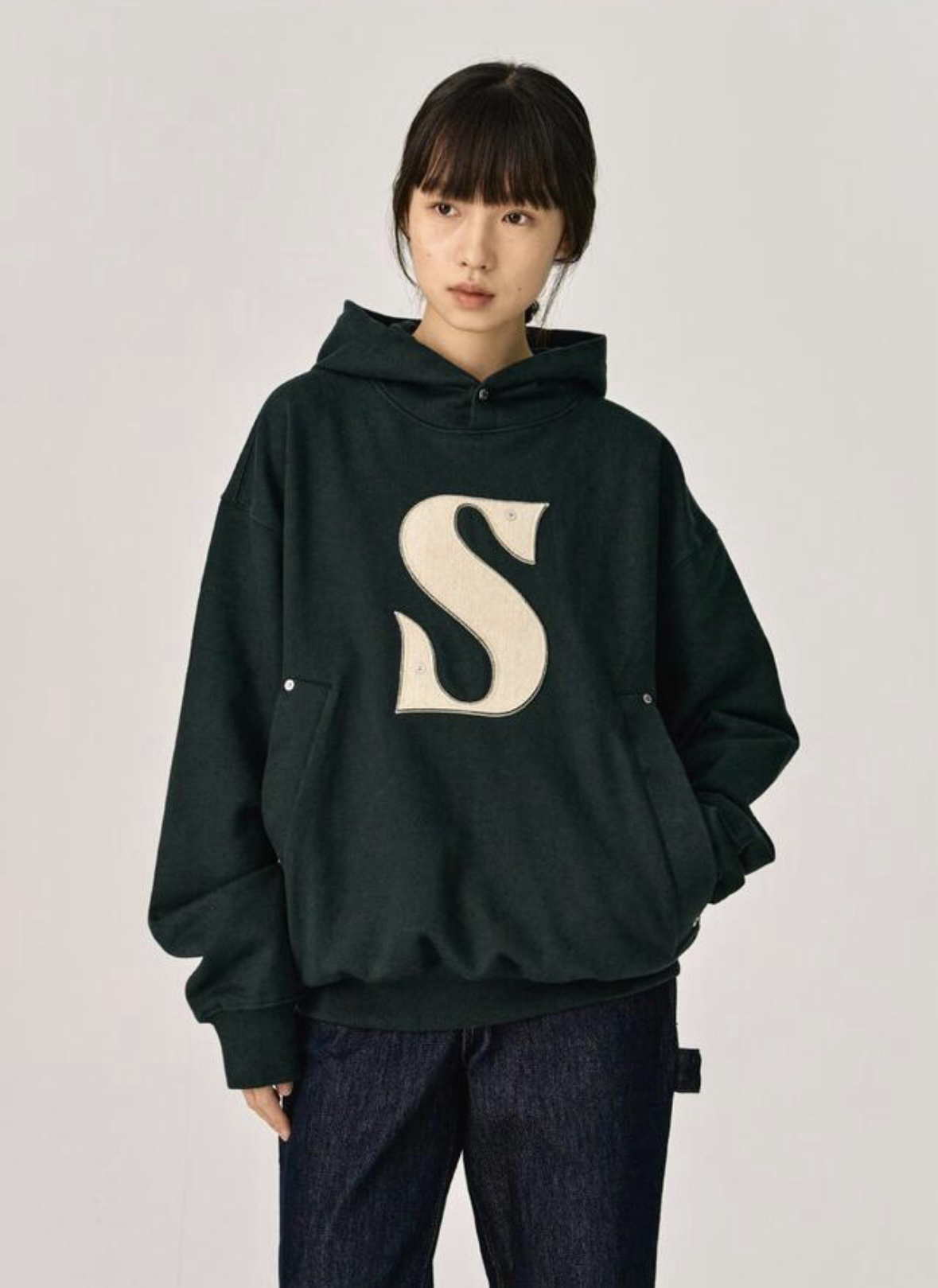 <韓國代購> SATUR RIVET APPLIQUE POCKET LOGO HOODIE