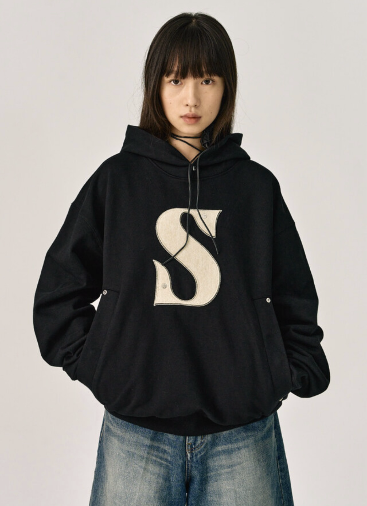 Name : SATUR RIVET APPLIQUE POCKET LOGO HOODIE