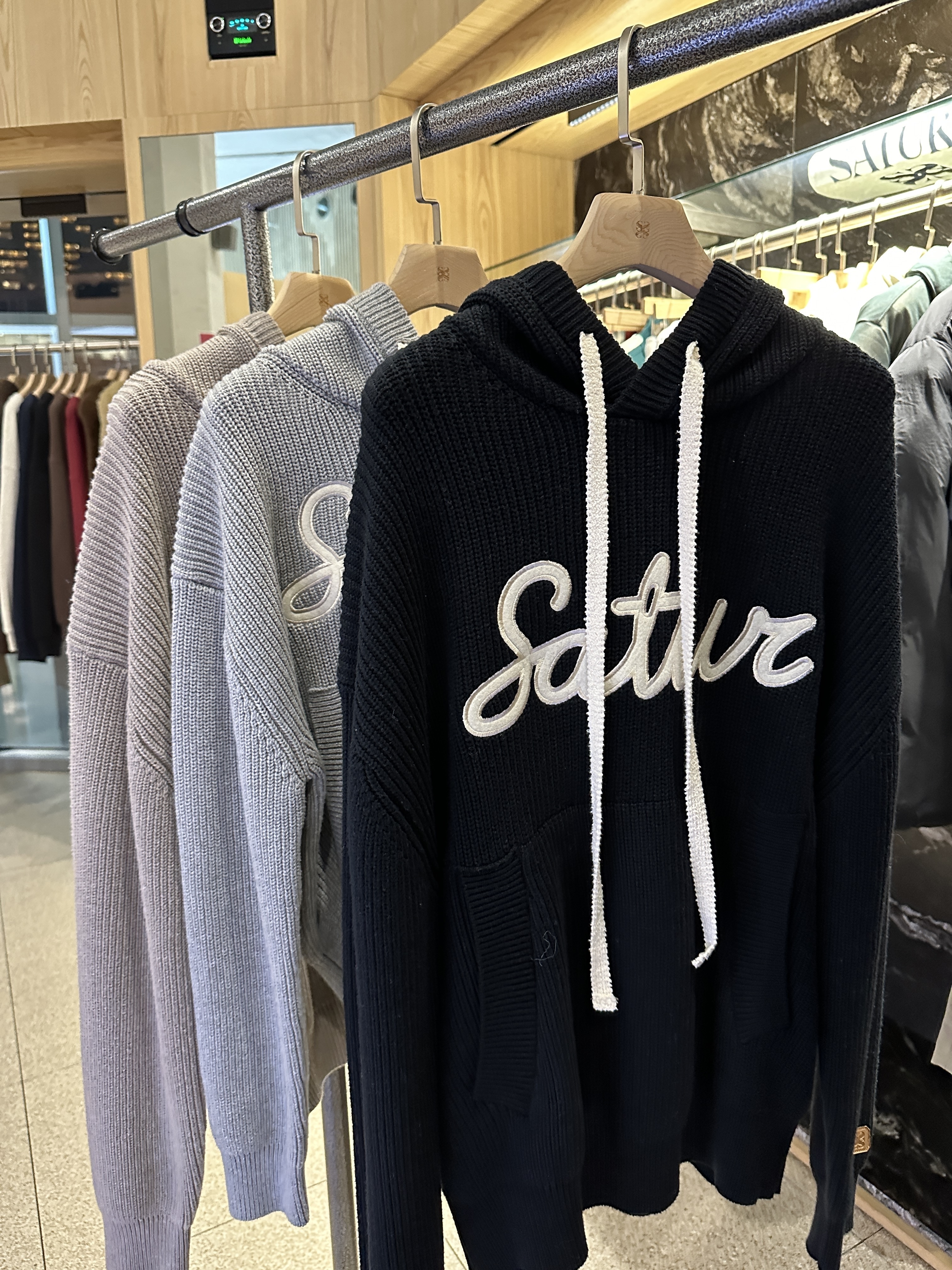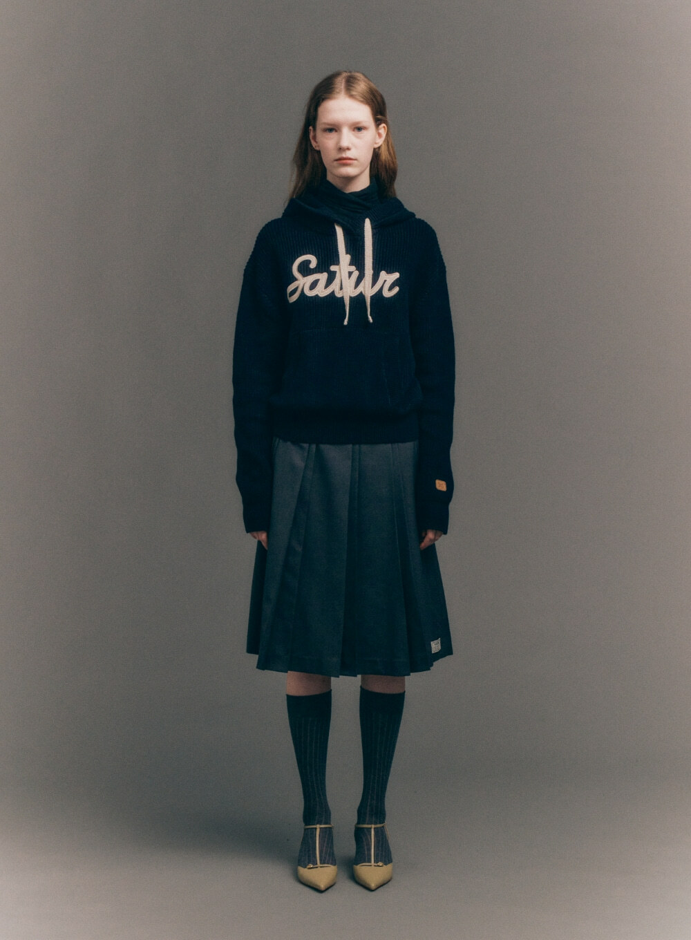 <韓國代購> SATUR (W) APPLIQUE LOGO CASHMERE BLEND HOOD KNIT