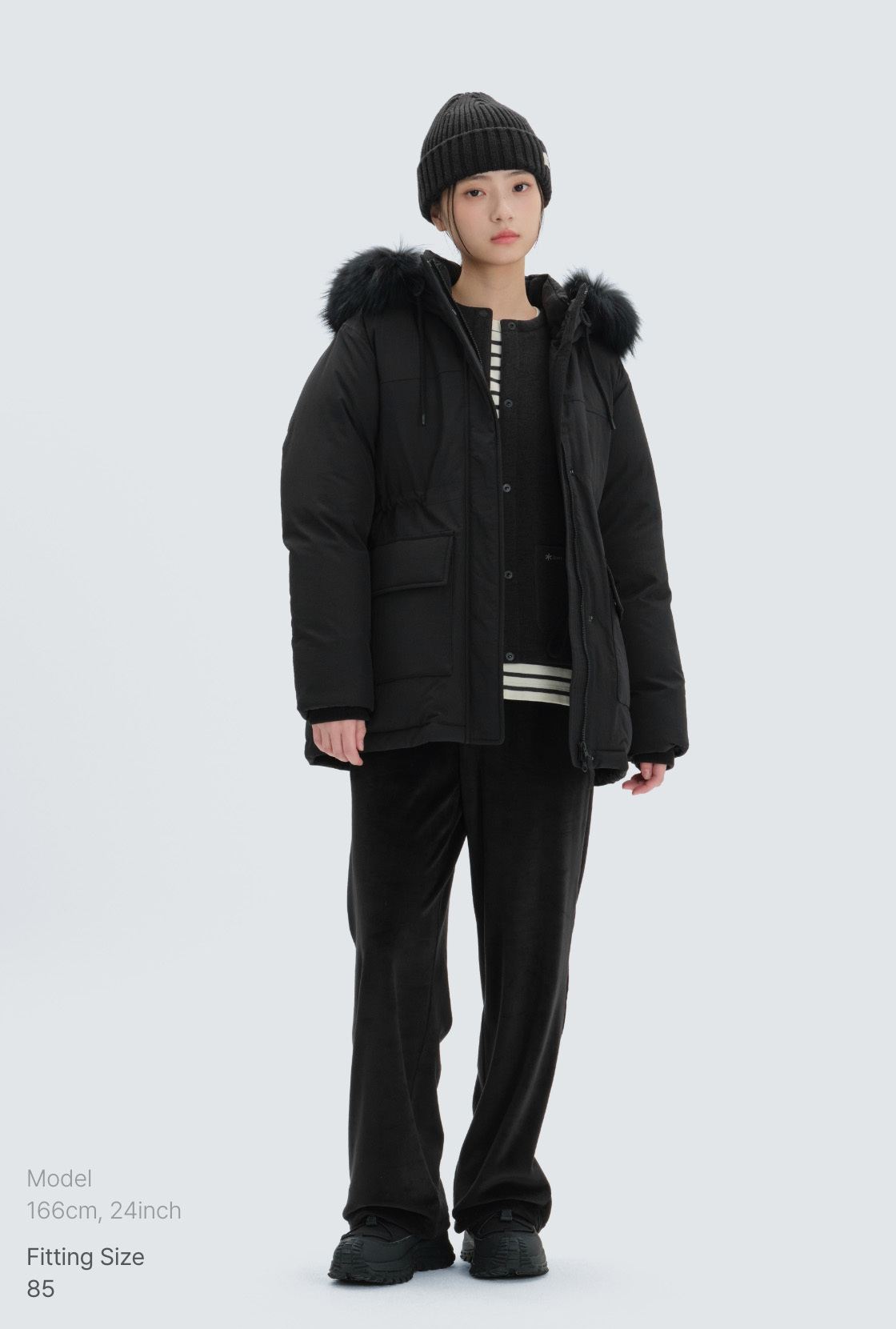 S SIZE (85) : LENGTH 74CM CHEST 59CM SHOULDER 48CM SLEEVE 58.5CM