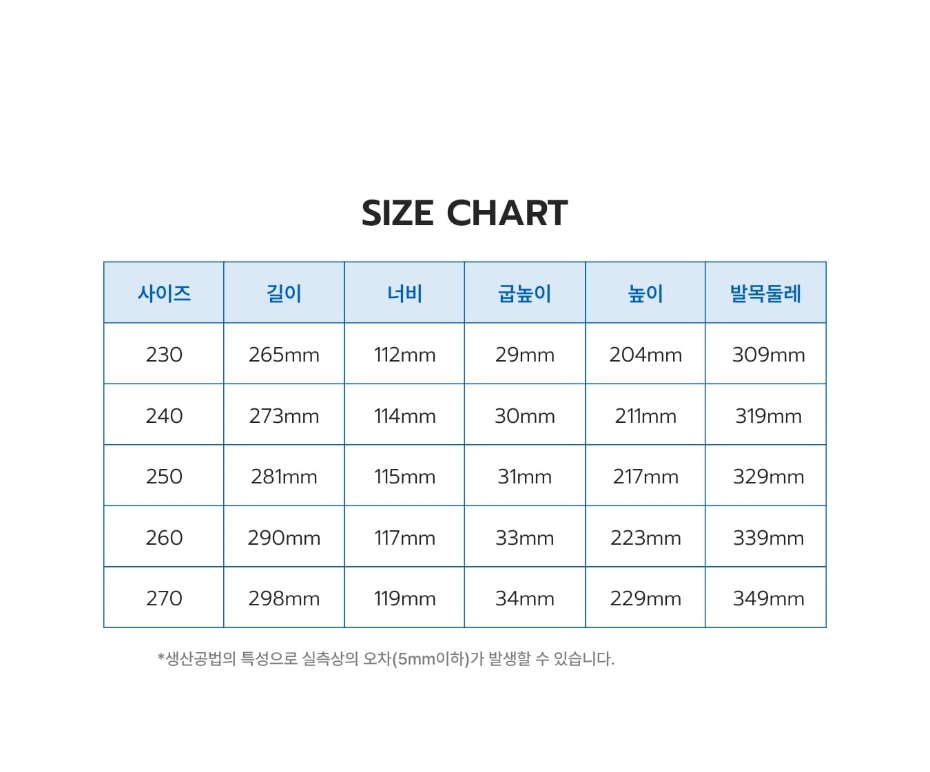 Sizes : 230-270