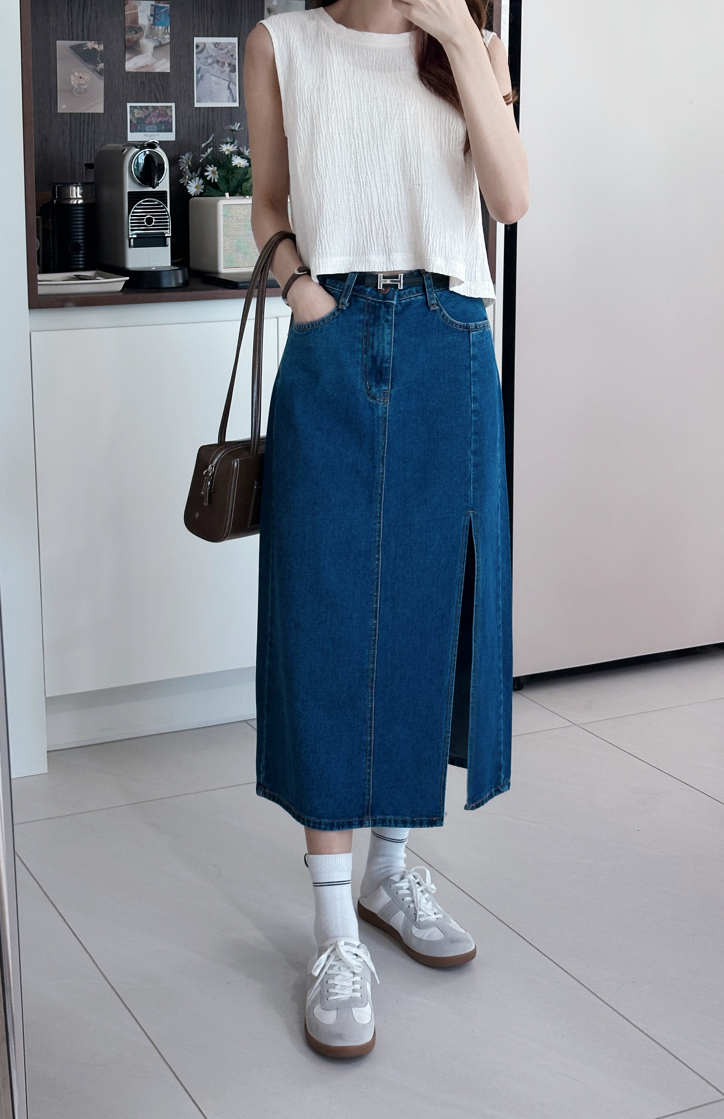 KR209 時尚休閒側開叉牛仔裙