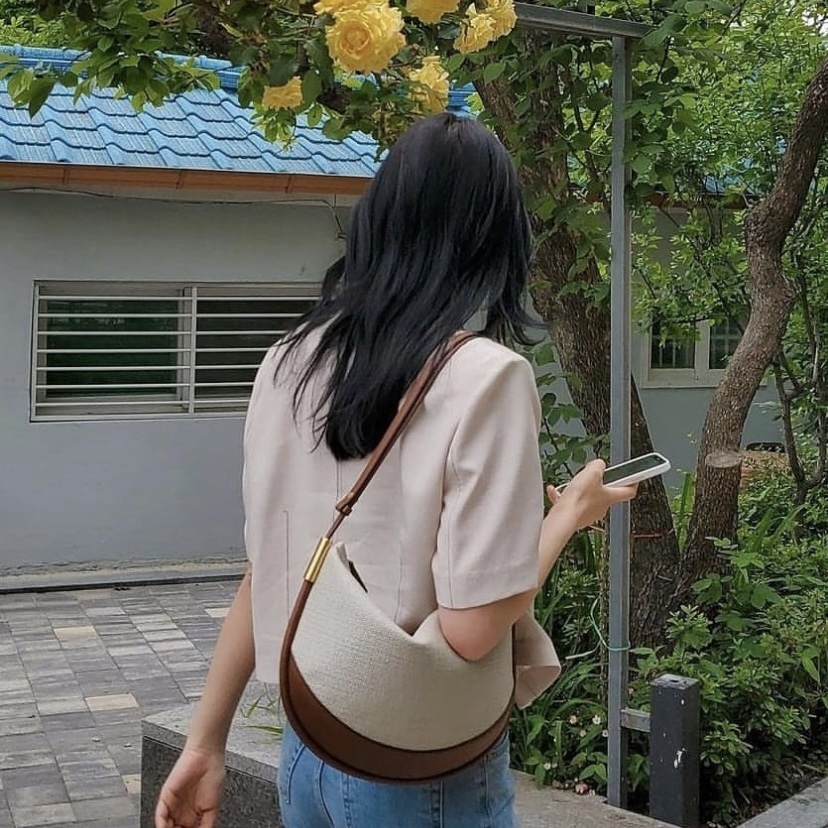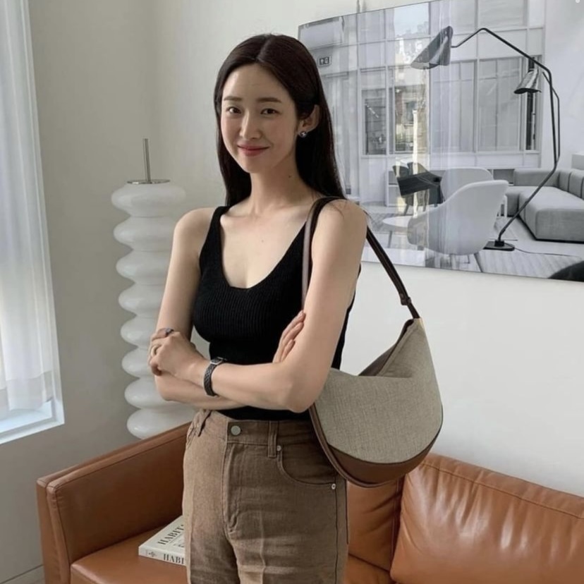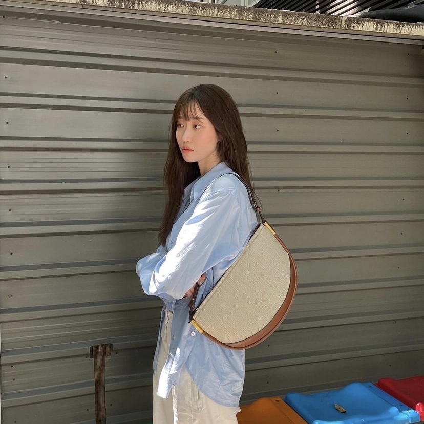 而呢個SAC DE CRETE TOILE運用左法式麻布風格加上現時好興既半月袋做設計