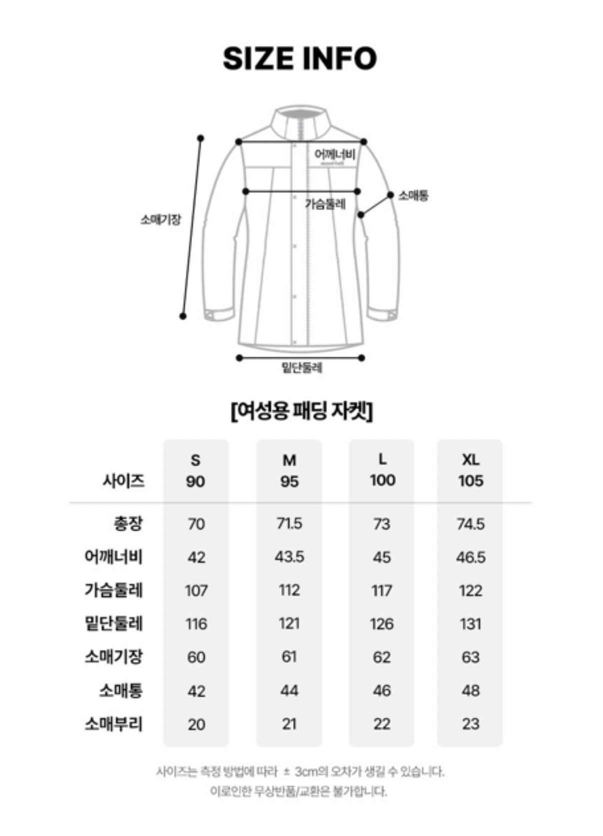 S SIZE (90 ) : LENGTH 70CM CHEST 107 CM SHOULDER42 CM SLEEVE 60CM